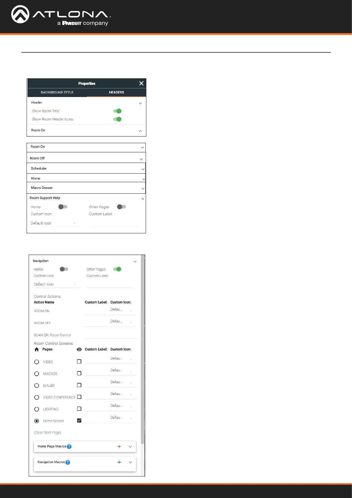 • Room On/Room O/Scheduler/Home/Macro Drawer/Room