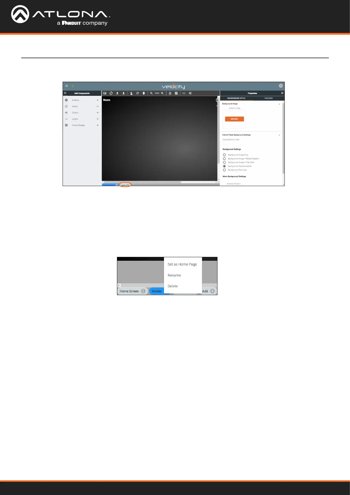 Multiple custom pages can be created for each control device. The pages will be listed at the bottom center area of