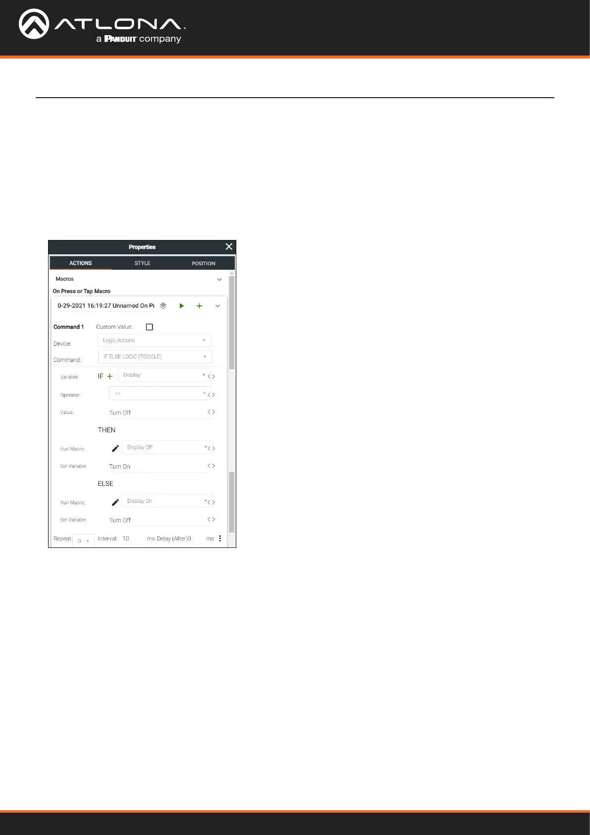 With these values, if the button is pressed while it says Turn On, it will send the Macro to turn on the display and then