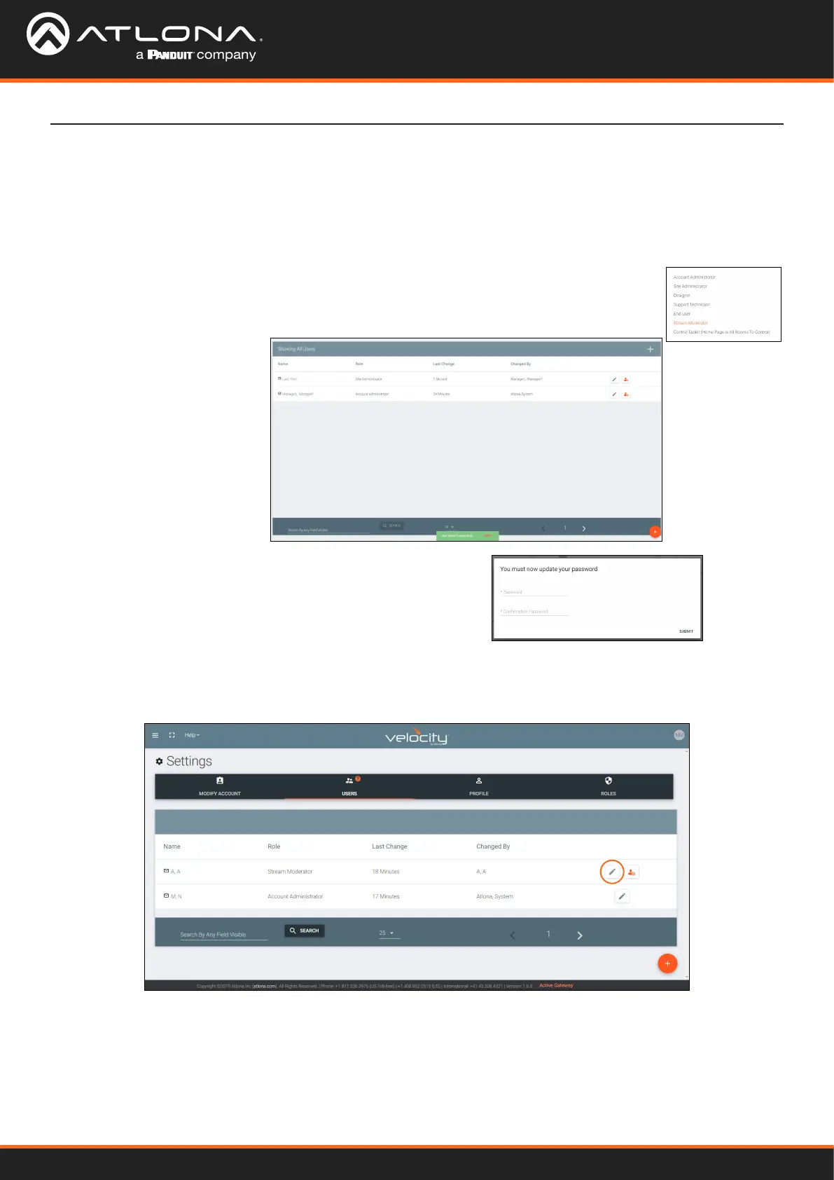Technician, End User, Stream Moderator, and Control Tablet. To view the permissions of each role, select