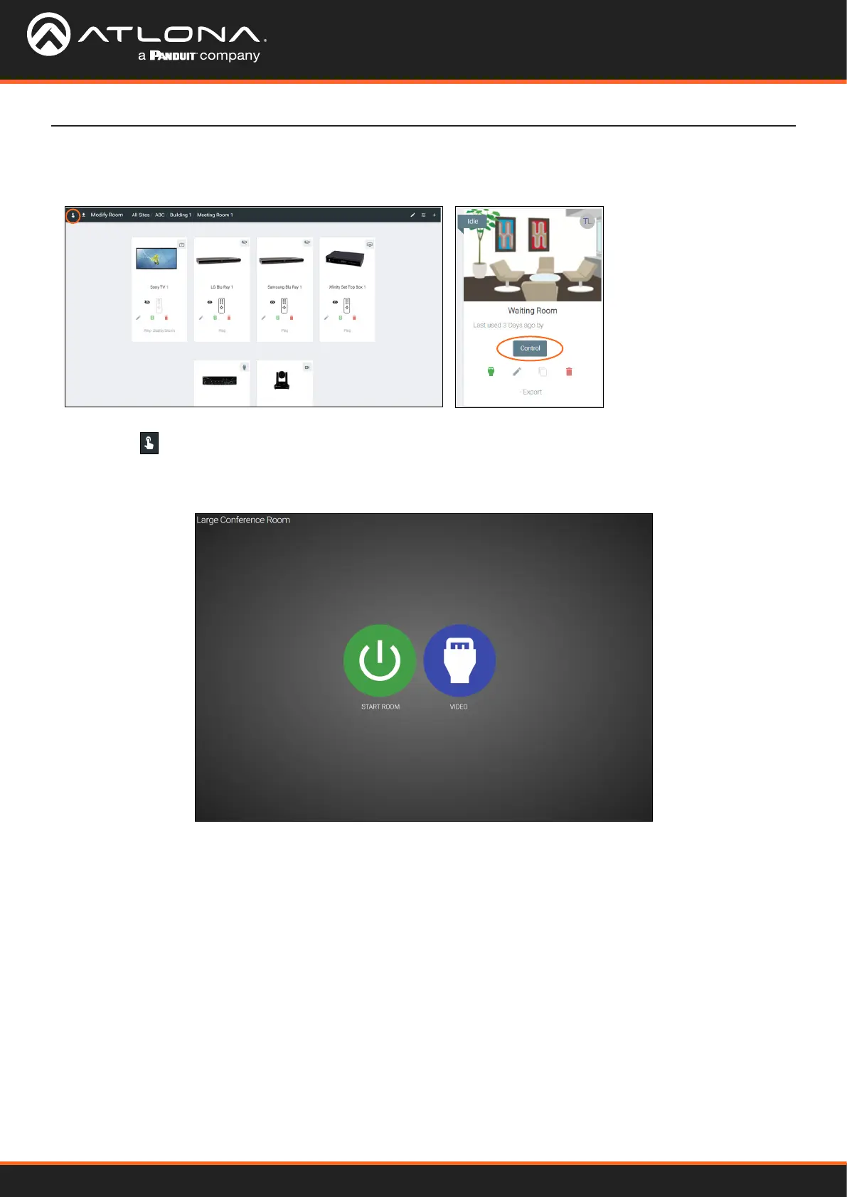 excluded during room set up) or press the VIDEO button to open the room and control all the devices manually.
