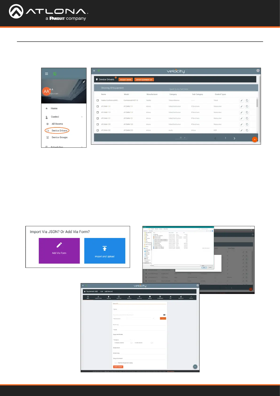 2. Select the purple Add via Form button for creating a new device and the blue Import and Upload button if