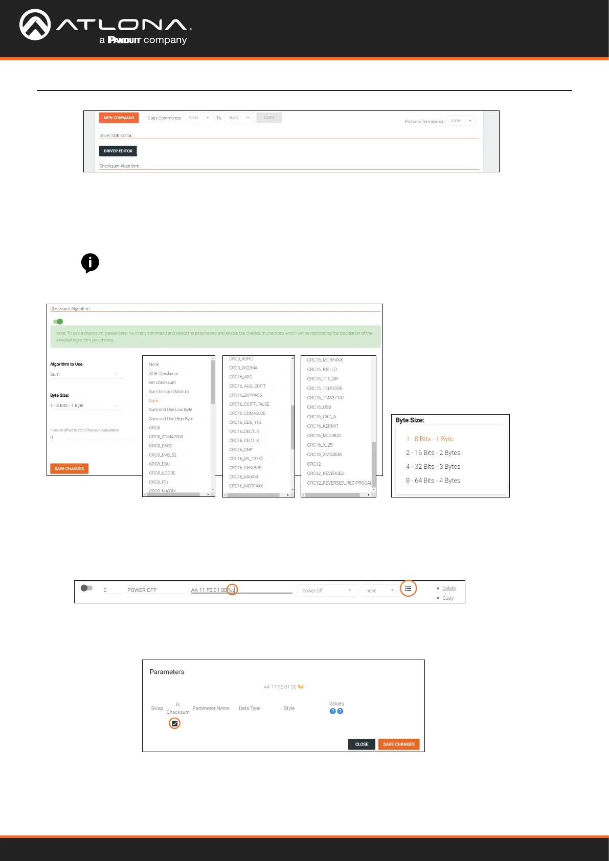 Algorithm to Use - Use the drop down menu to select the type of checksum algorithm the command.