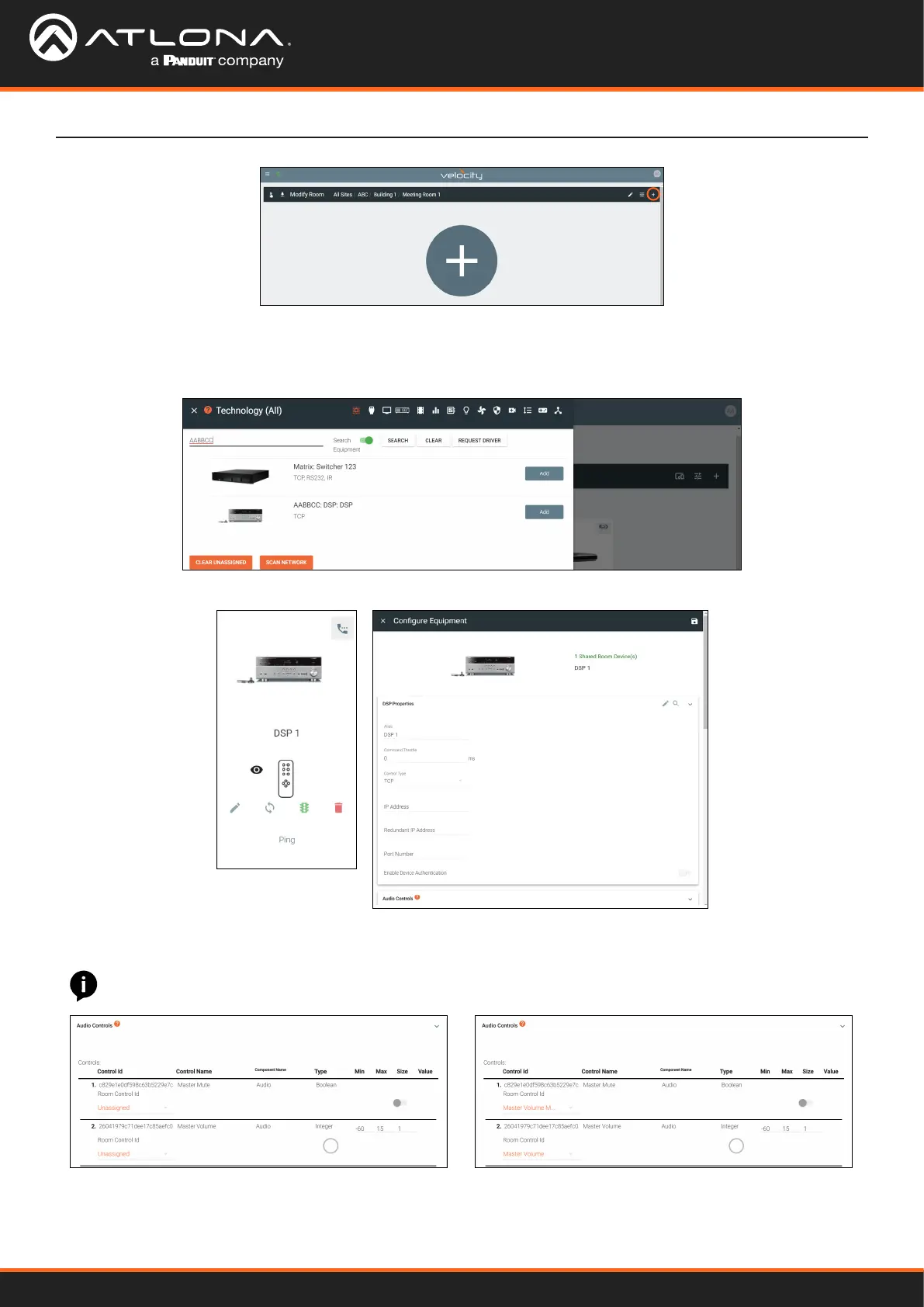 NOTE: Master Volume Mute and Master Volume commands must be set up or audio control will not work