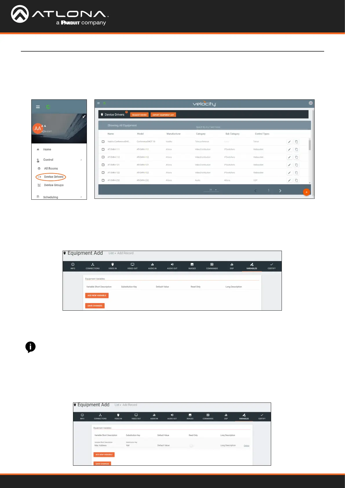 5. Go to the VARIABLES tab. If this is a new driver, follow the steps for the previous tabs in the Add section before