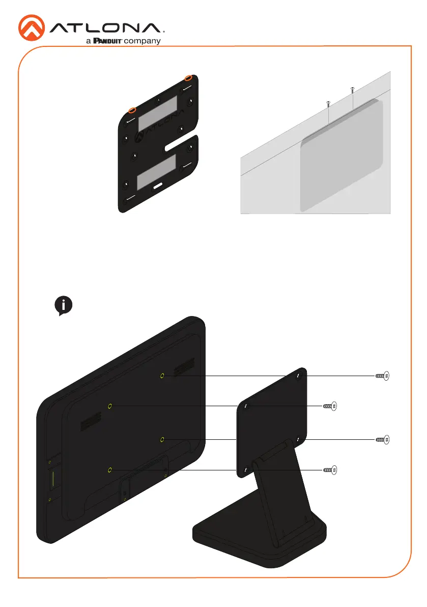 2 Align the screw holes on the back of the wall plate with the holes on the adjustable stand.