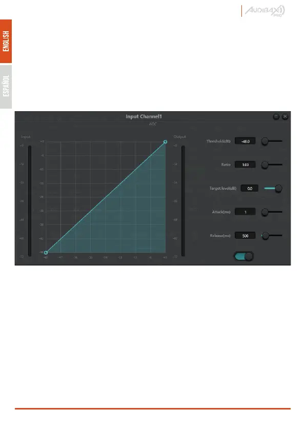 - Threshold: When the signal level is lower than the threshold, the input-to-output ratio is