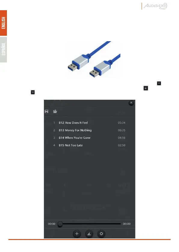 the bottom of the playlist to open file folder and select songs to be played, to clear the