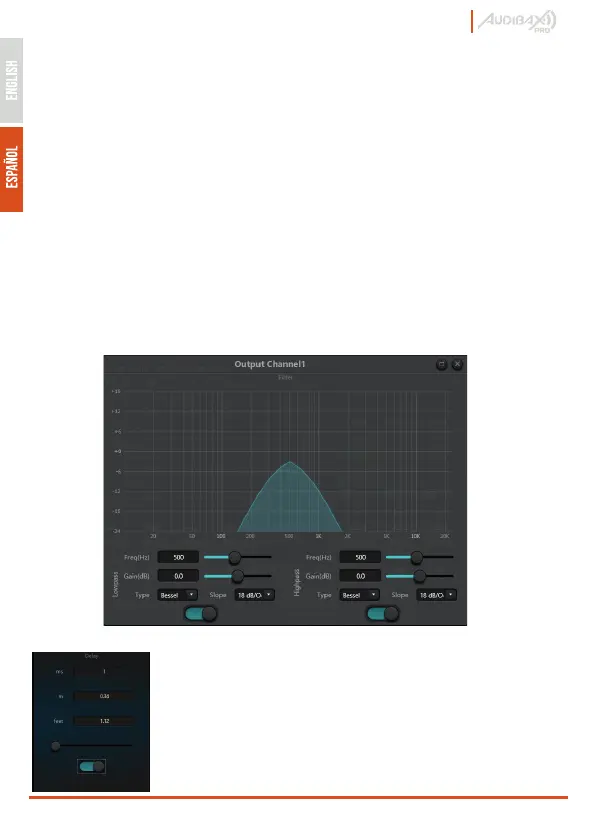 Cada canal de salida proporciona módulos de paso alto y bajo que constan de filtros de