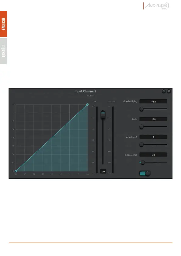 threshold, the exceeding part only changes by 1dB. A compression ratio of 1:1 suggests