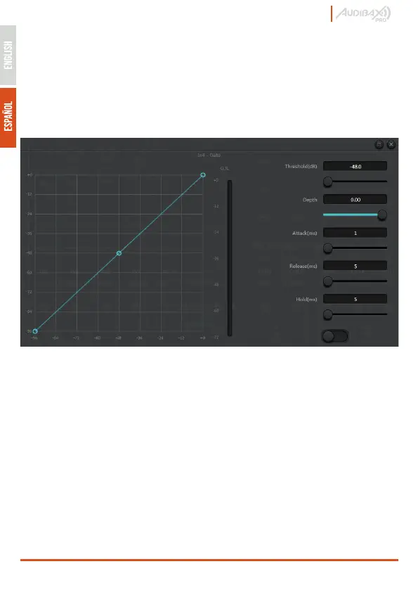 - Ducker: cuando el nivel de un canal excede el umbral especificado, el nivel del otro canal