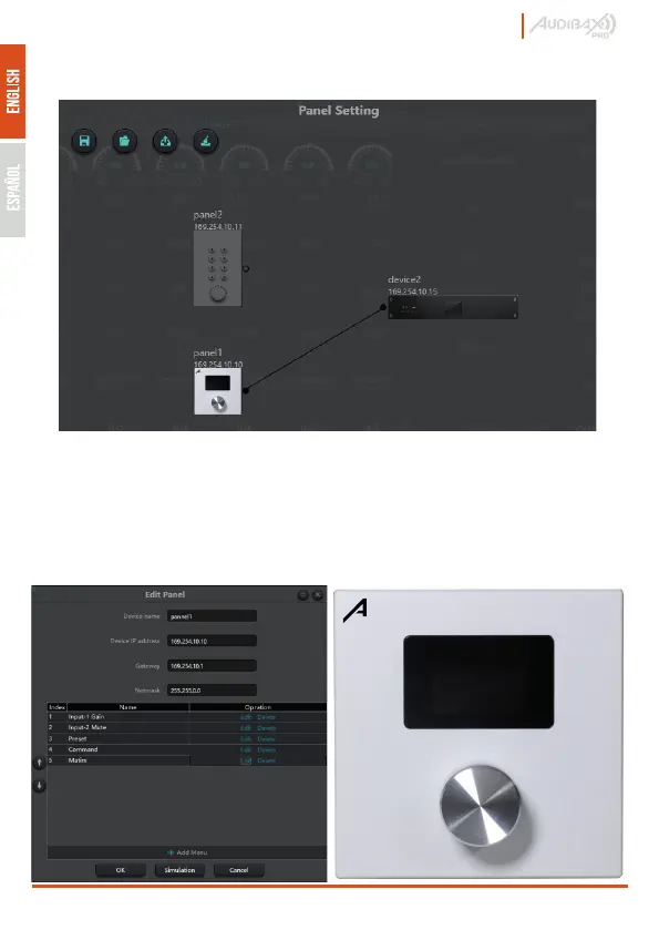 Drag the panel link icon to the unit you want to control with the mouse pointer.