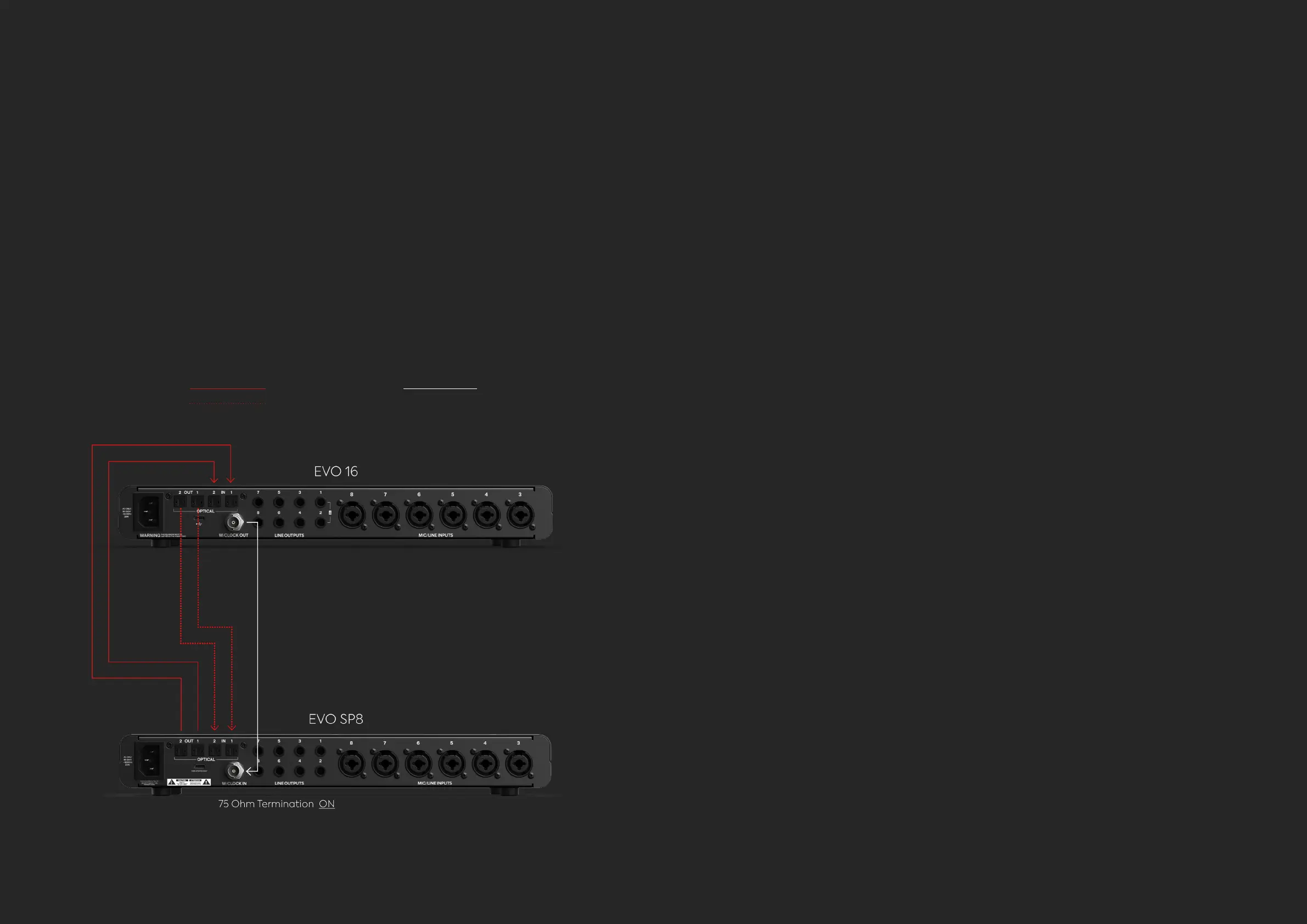 Connect the Optical Outputs of the EVO 16 to the Optical Inputs of