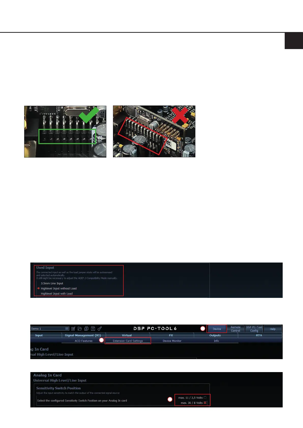 genommen wurde (Seite 4, Punkt 4), kann die Eingangsempndlichkeit im Menü „Device“ unter dem Reiter „Exten-