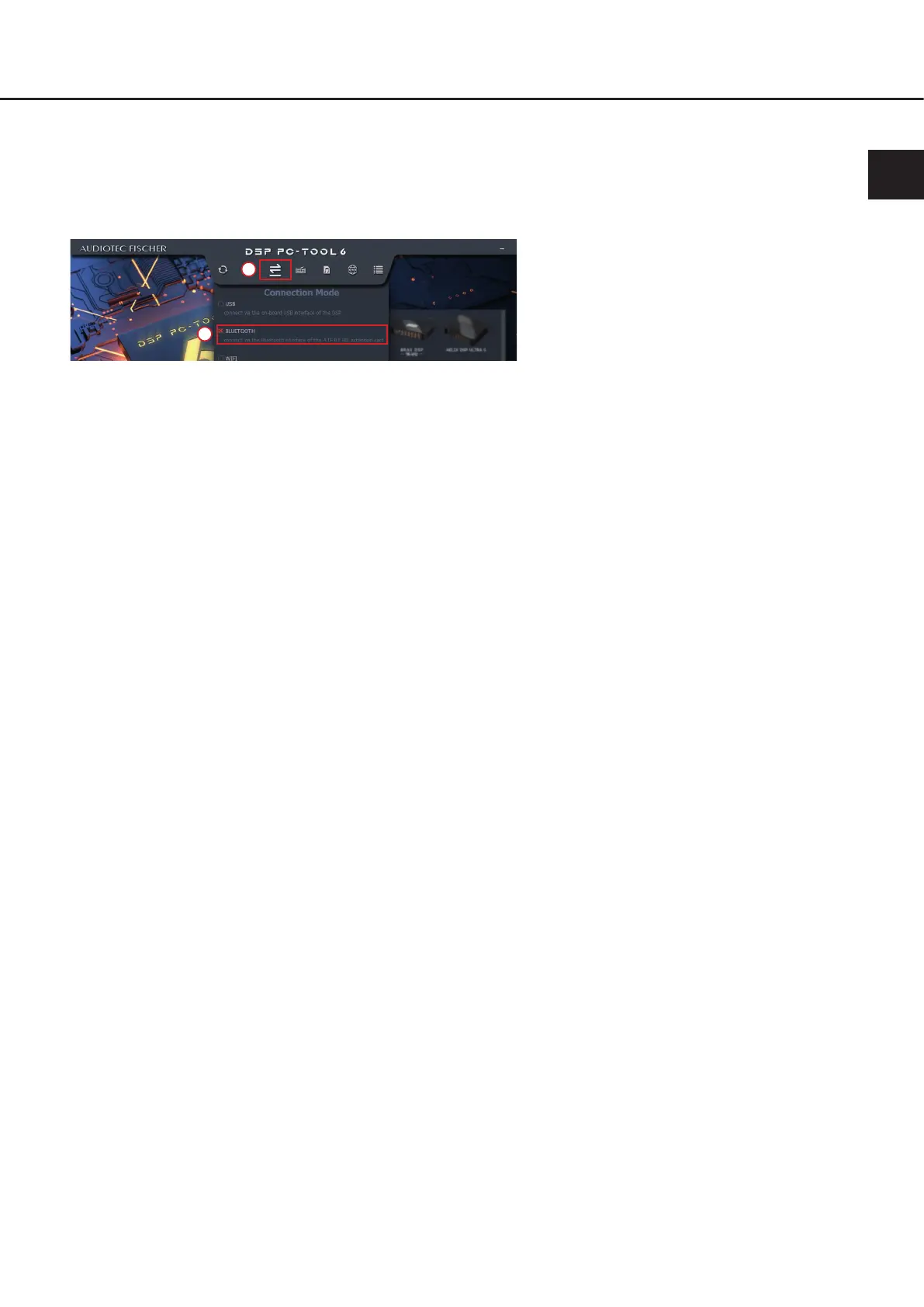 2. Launch the DSP PC-Tool software. In the launcher navigation at the top, set the connection type to Bluetooth