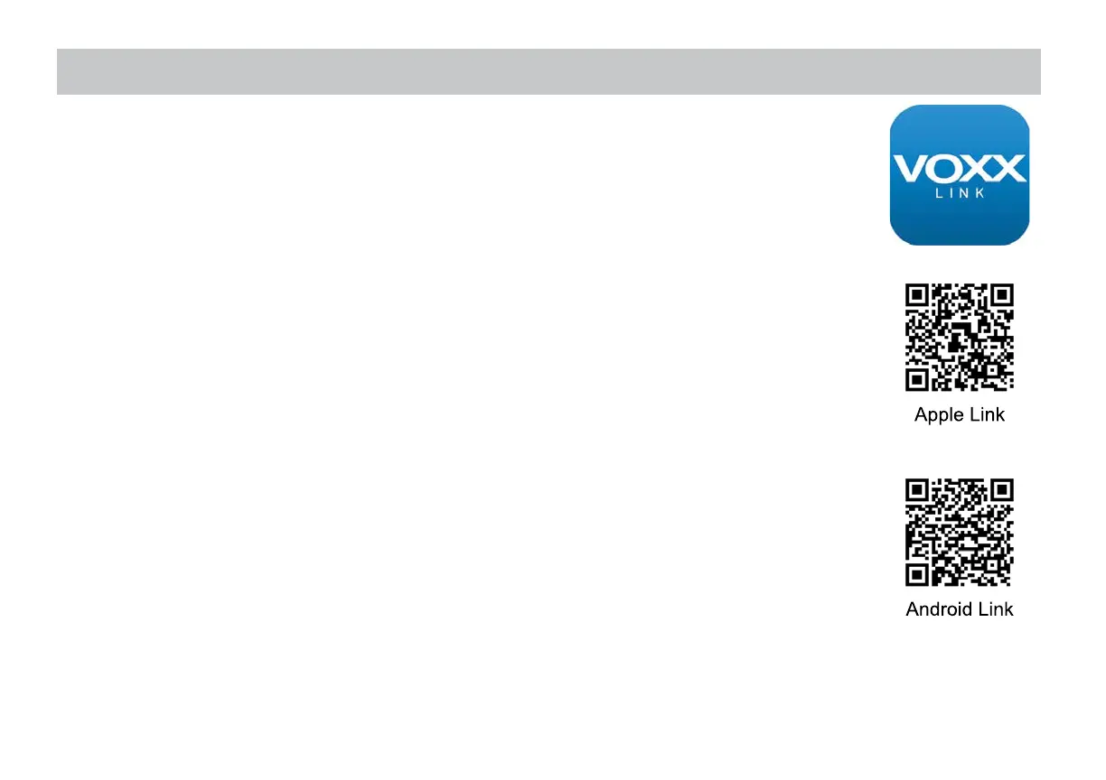 Download and install the VOXX LINK APP from the Google Play Store or Apple APP Store onto your Android or iOS Smartphone.