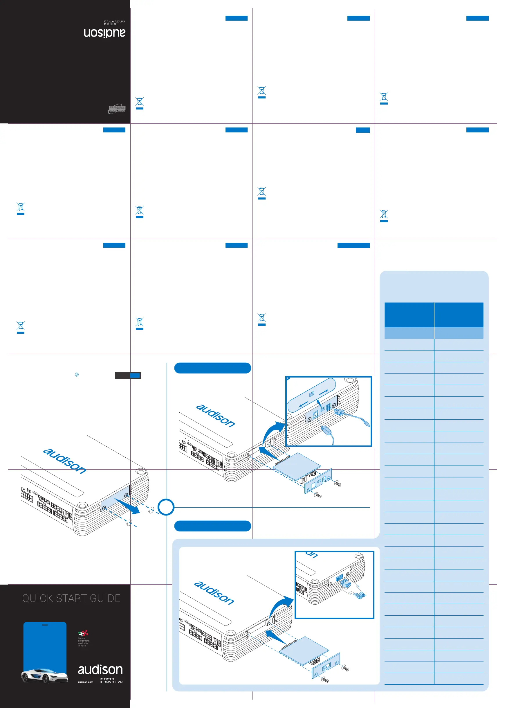7. 保修证明:有关更多信息,请访问Audison网站。