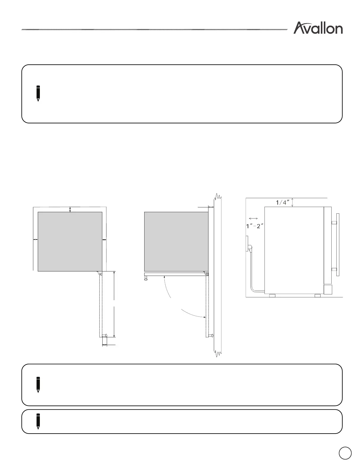 • To ensure proper service access and venlaon, allow between 1 - 2 inches of clearance at
