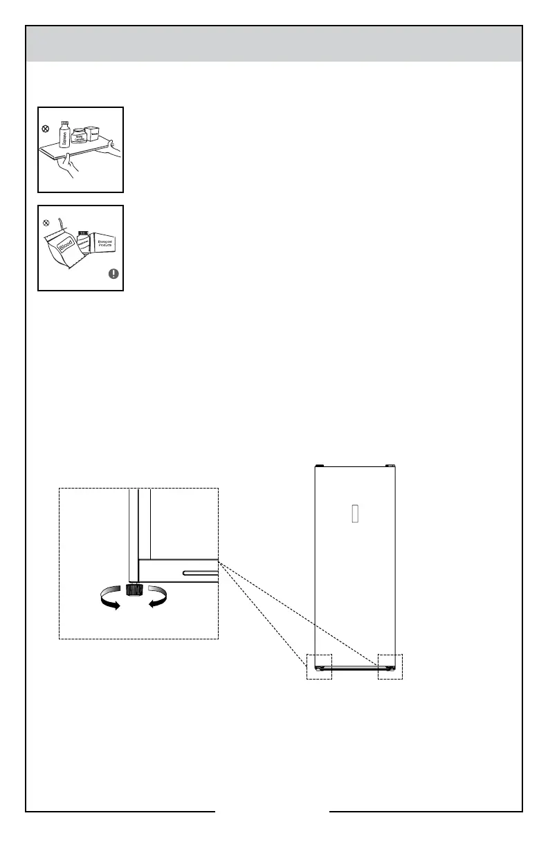 3. Adjust both leveling feet as needed until the refrigerator is stable and level.