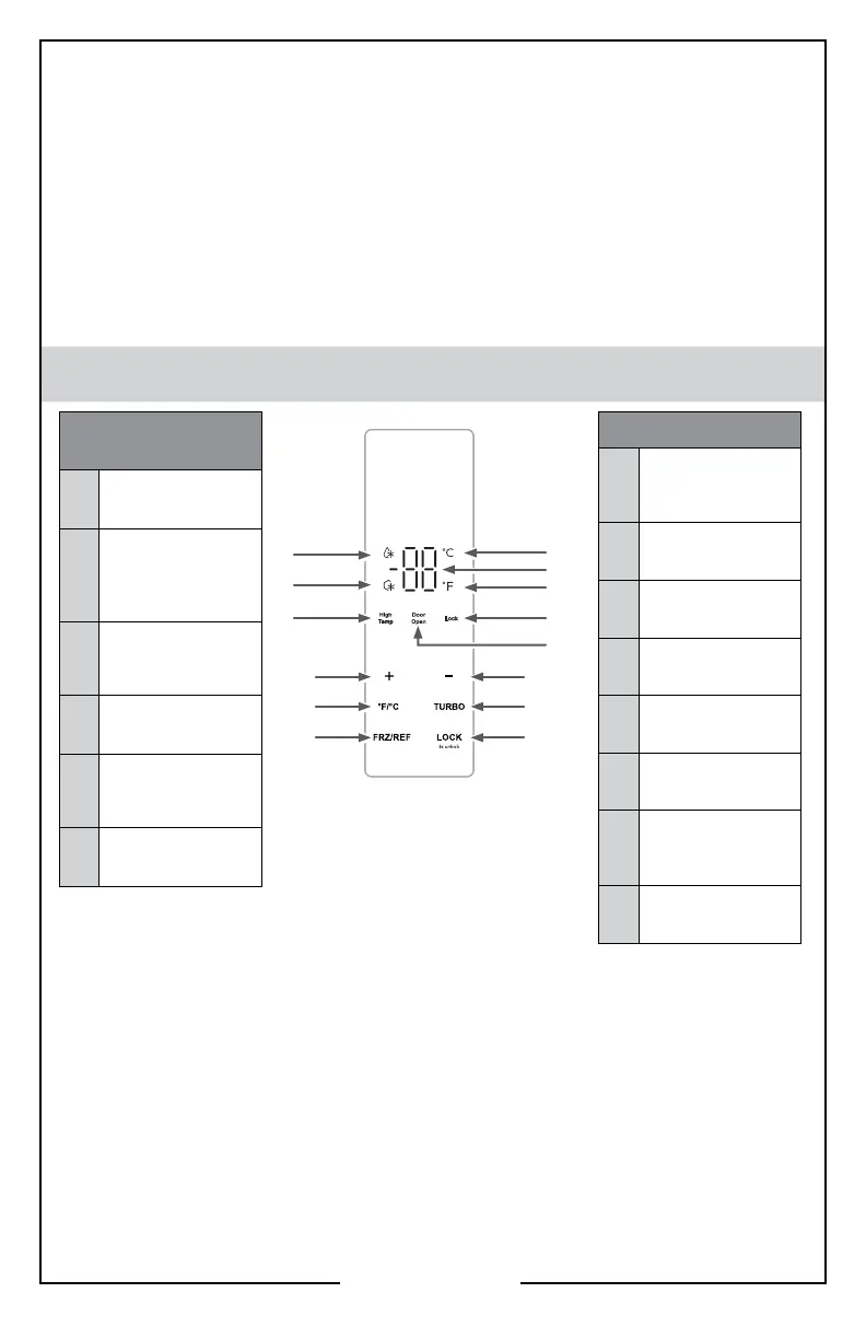 • L’écran affichera la température réglée du frigo tant que l’appareil