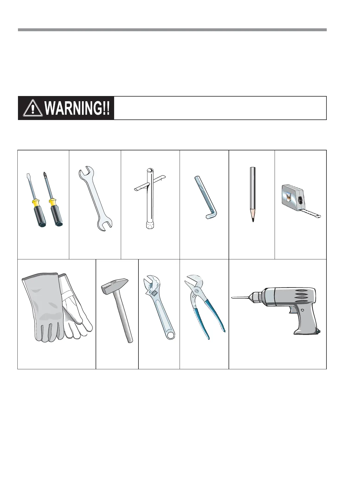 TOOLS NEEDED FOR INSTALLATION (NOT SUPPLIED WITH THE APPLIANCE)
