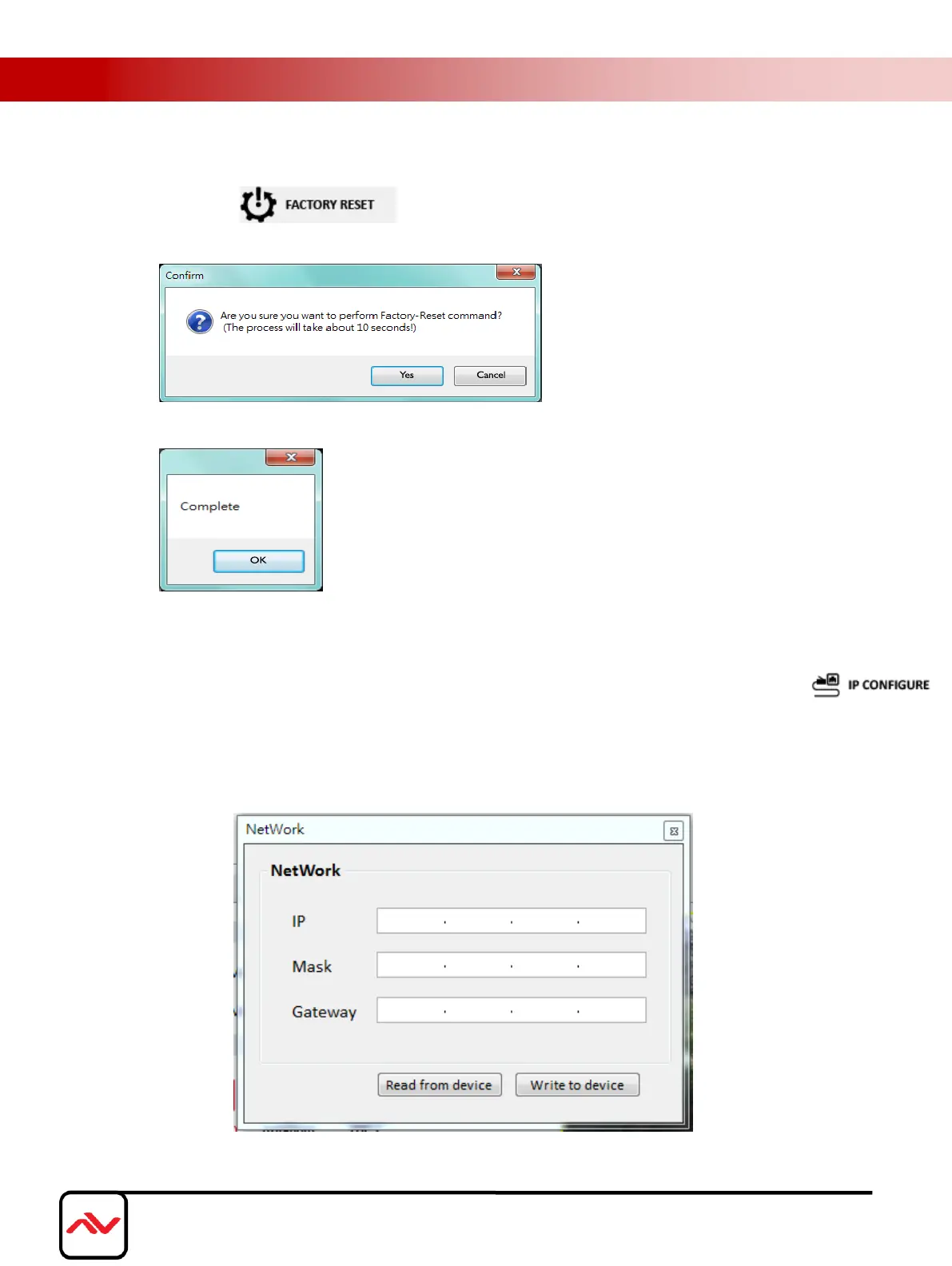 device. After the step of IP configuration, please restart the machine.