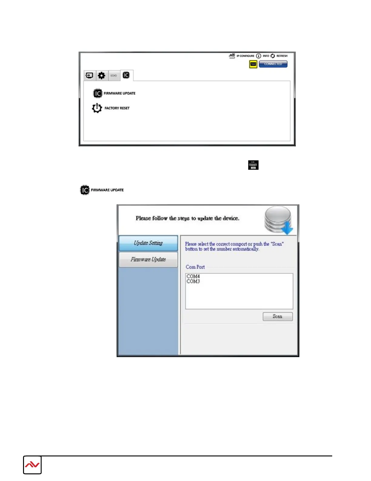 Click button to perform authorized firmware update.