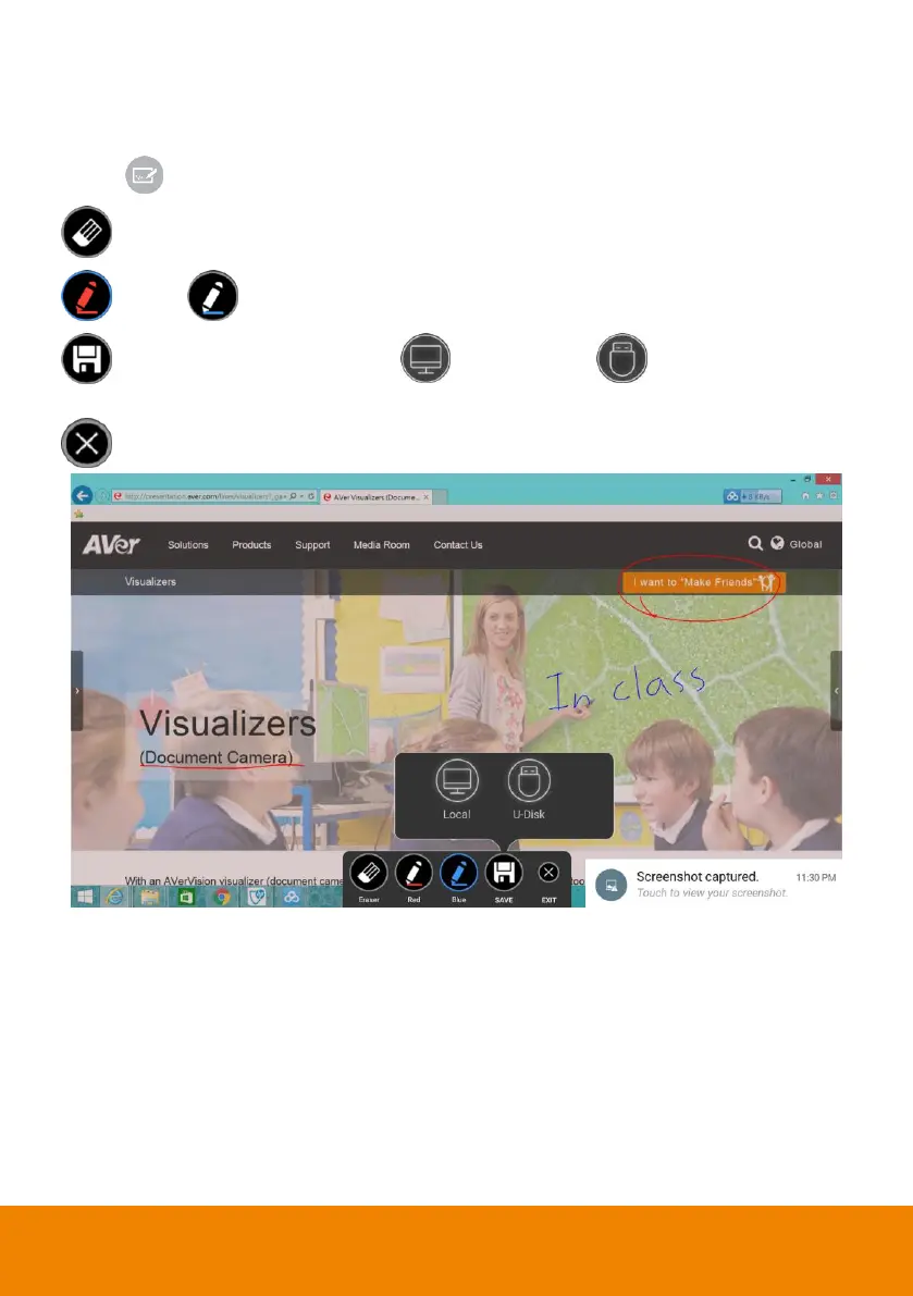 (Save): Save the screen to local ( , IFP) or U-Disk ( , external USB pen