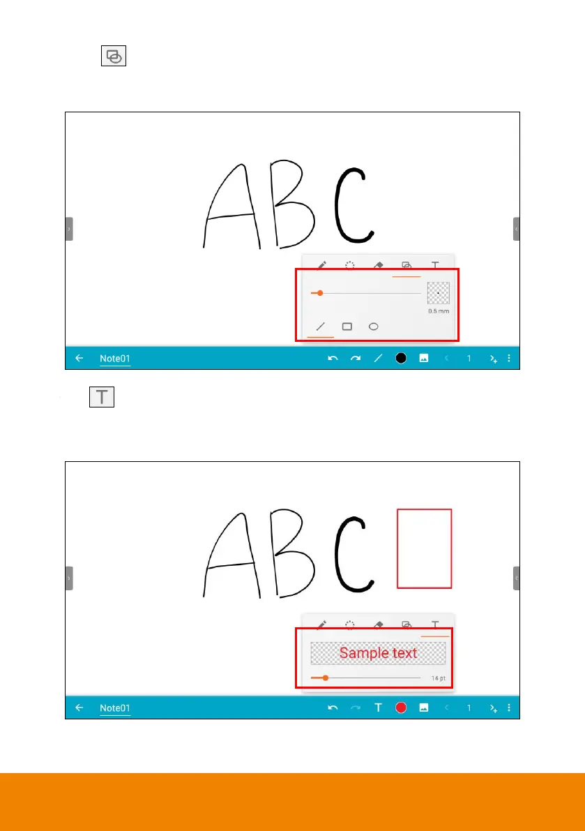 Draw the shape object on the note page. Shape objects are included line, square, and