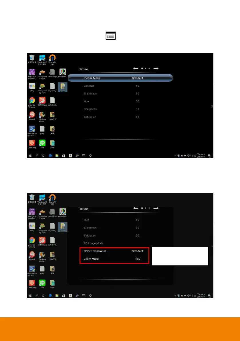 Select the picture mode and adjust the parameters.