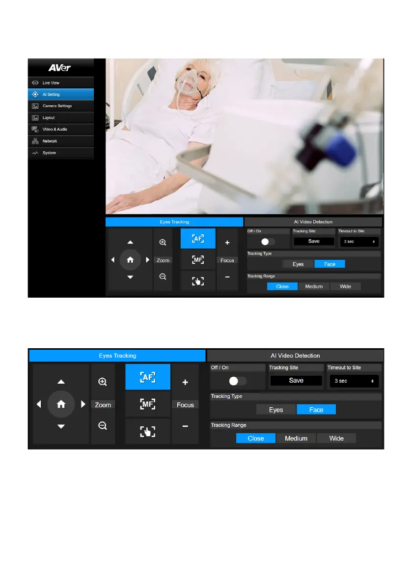 Manually adjusting pan, tilt and zoom controls during Facial Tracking will turn off the function.
