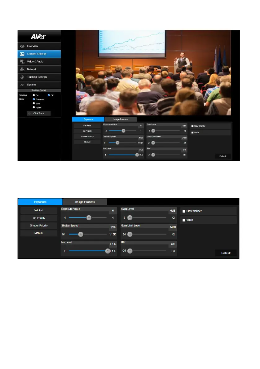 Click the Exposure tab to display the panel below for configuration.