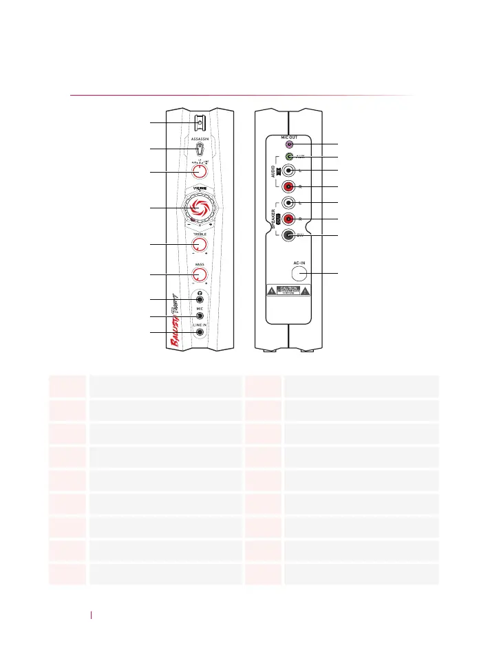 2 Pulsante modalità Assassino 11 Ingresso ausiliario