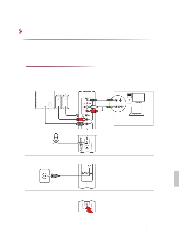 Připojte satelitní reproduktory, subwoofer a zvuk počítače do ovládacího 1.