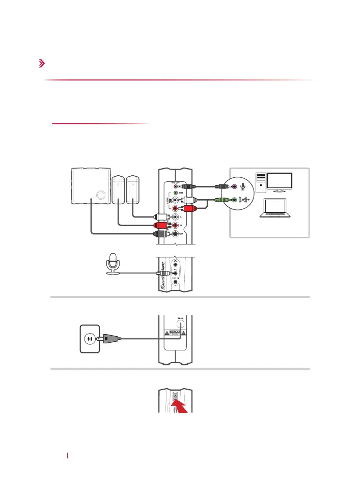 为避免损坏音箱或设备,在进行连接前请调低音量并关闭所有设备电源。