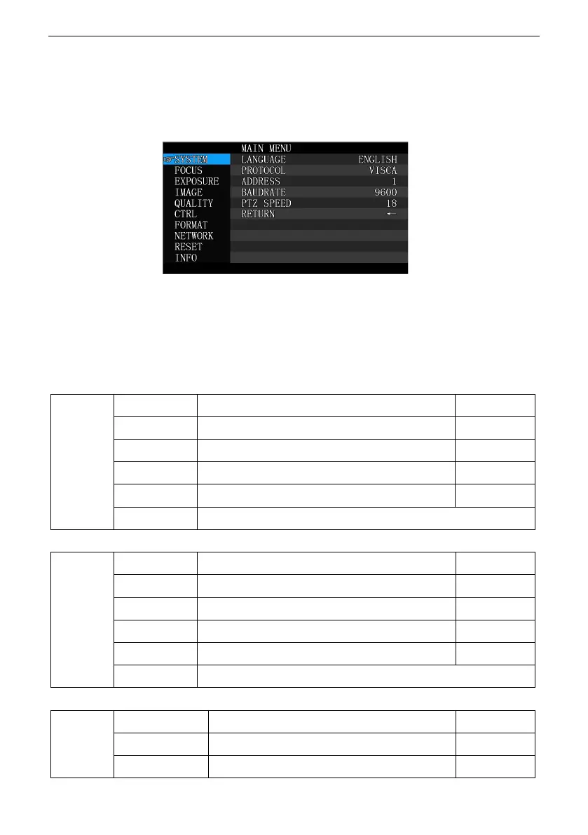 PROTOCOL Optional item: VISCA/PELCO-P/PELCO-D Default: VISCA
