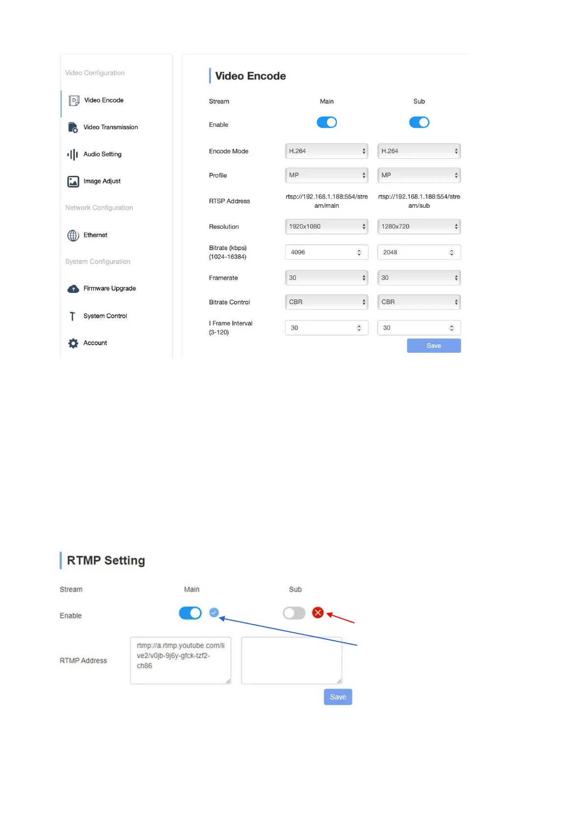To push RTMP stream to a server or public platforms, please make sure the camera’s IP configurations are set to be