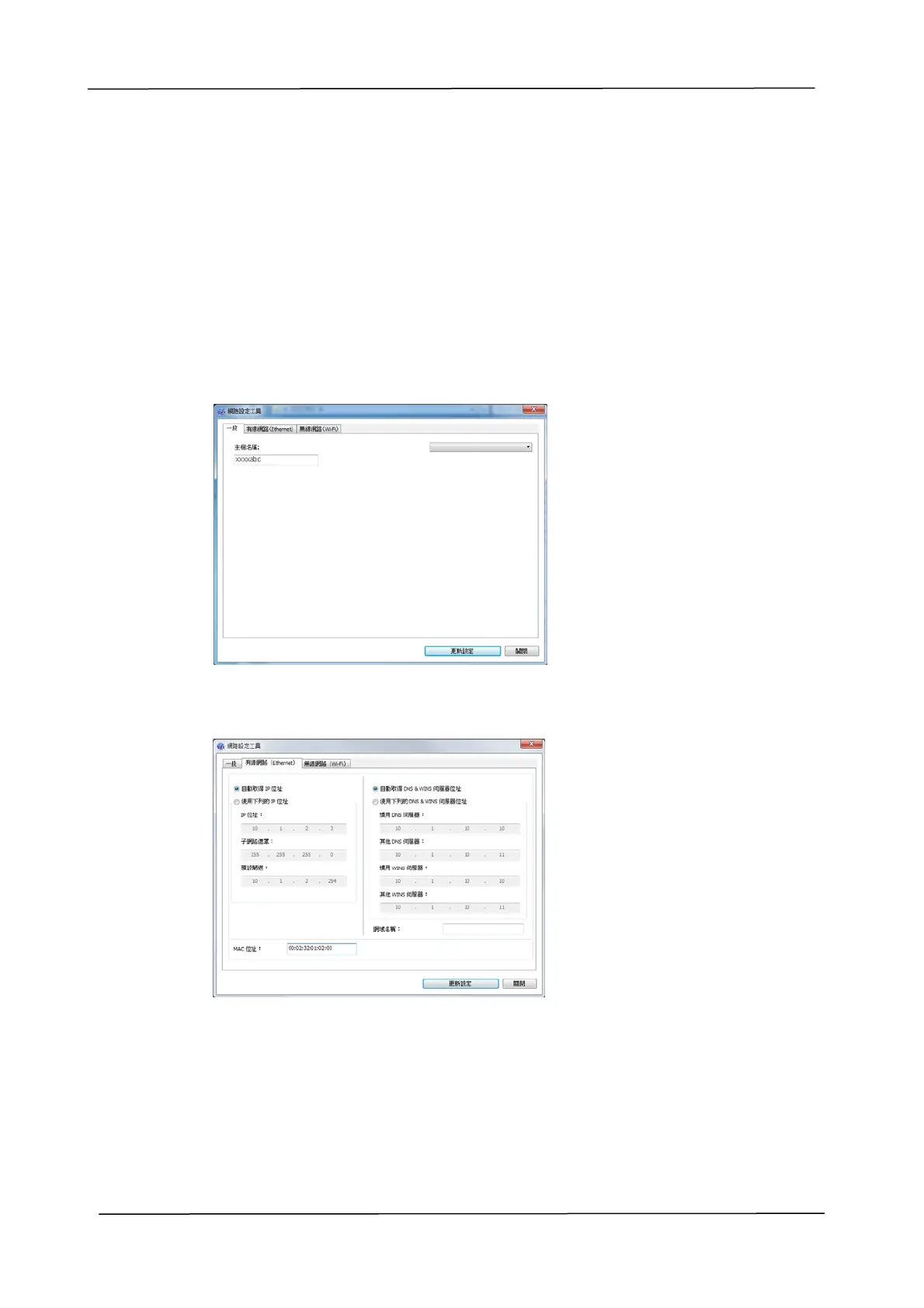 [子網路遮罩], 以及 [默認閘道] 欄位中,輸入指定的 IP 資訊。