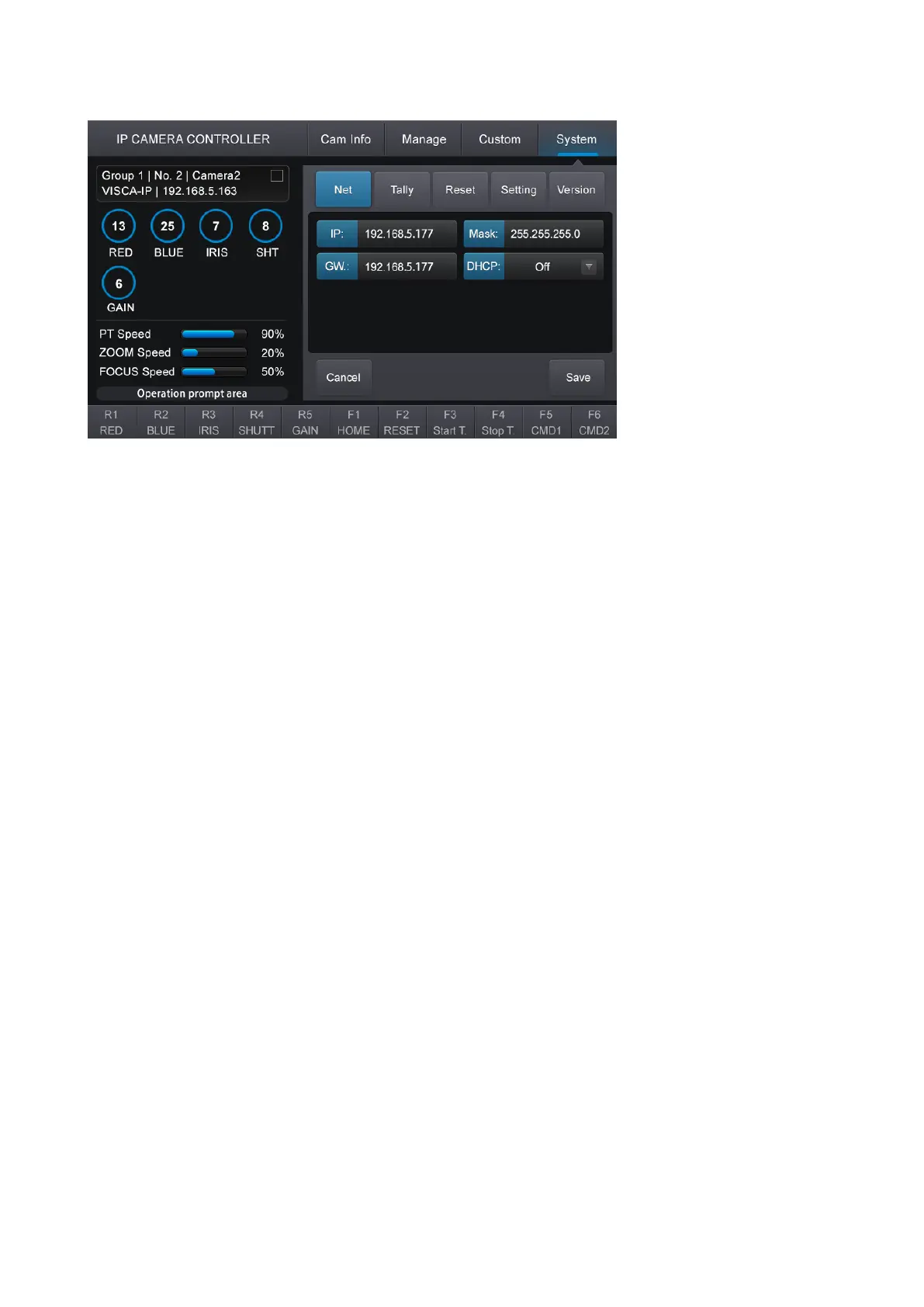 example, when the camera IP is 192.168.5.163, the controller IP can be 192.168.5.177.)
