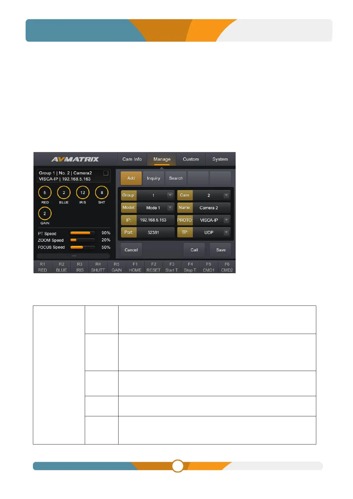 "ADD" menu. ② The auto search function only searches for cameras with VISCA-IP port number 52381.