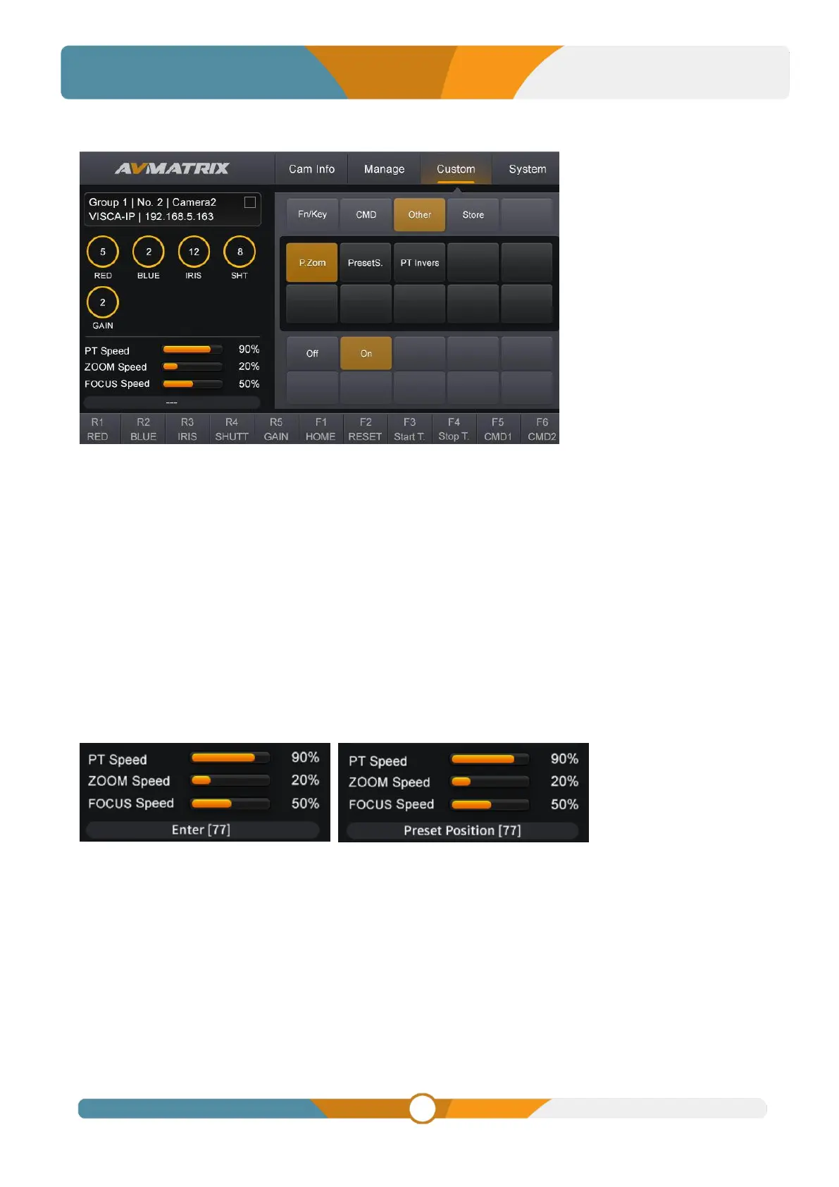 PT Invers: When turned on, the PT's joystick operation is reversed. That is, when you move the joystick