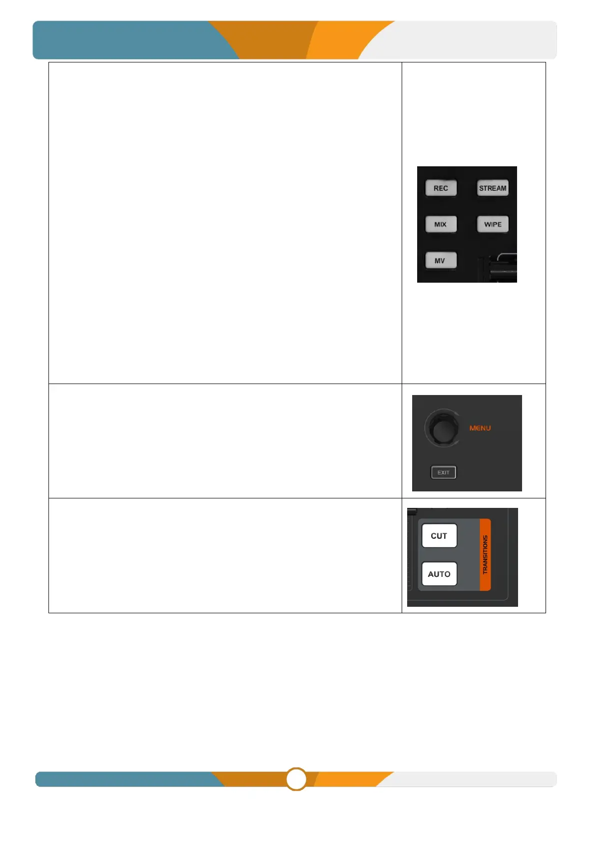 MIX: Selects a basic A/B dissolve for the next transition,press to light up