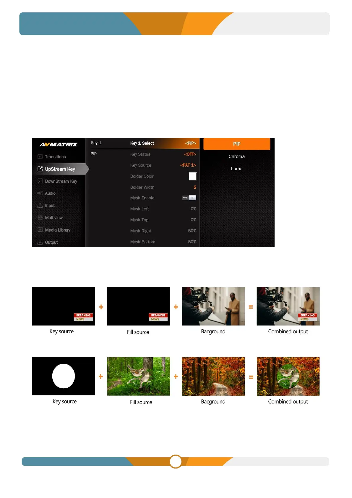 customize the size, position, key source, etc., of the luma key, chroma key, or PIP to achieve more