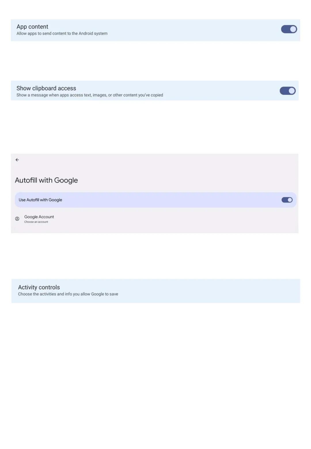 Choose the activities and info you allow Google to save (web, location, Youtube, ads, etc)