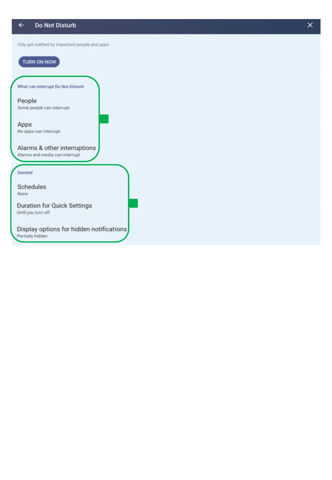 You can receive separately designated apps, contacts, notifications, etc. even when Do Not Disturb is active.
