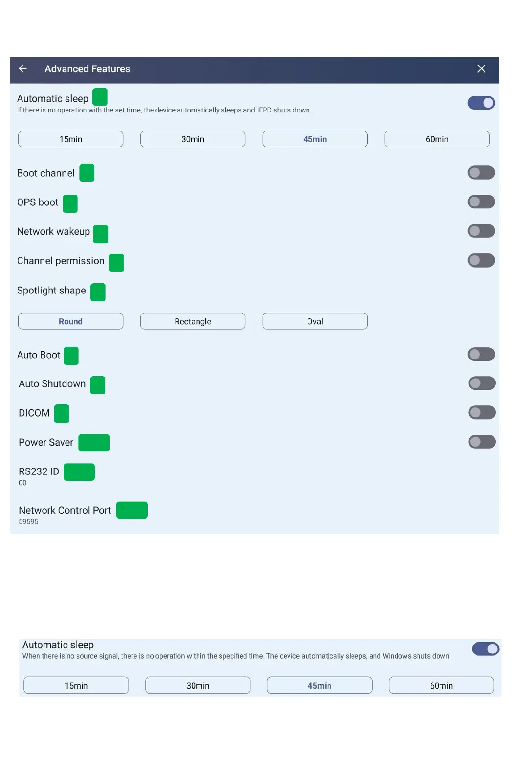 When there is no source signal or operation within the specified time, the device will automatically sleep and