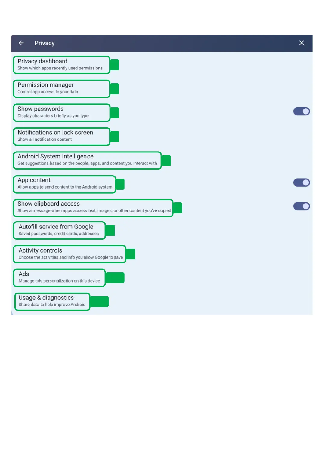 You can manage privacy, permissions, locks, and more.