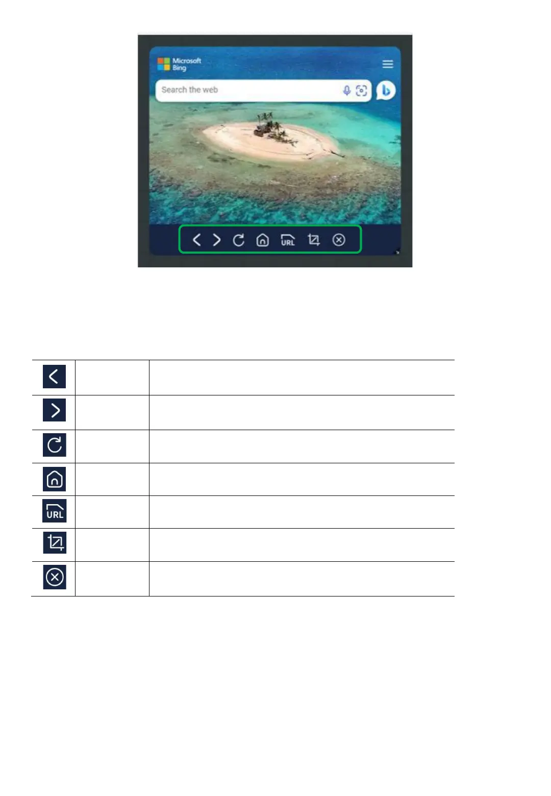* Brings up the URL search bar.