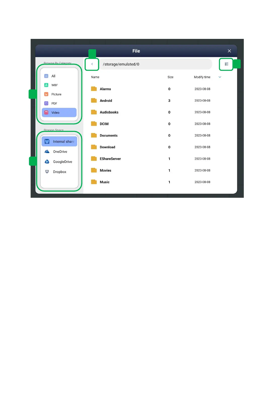 File storage list: You can select an available storage to use.