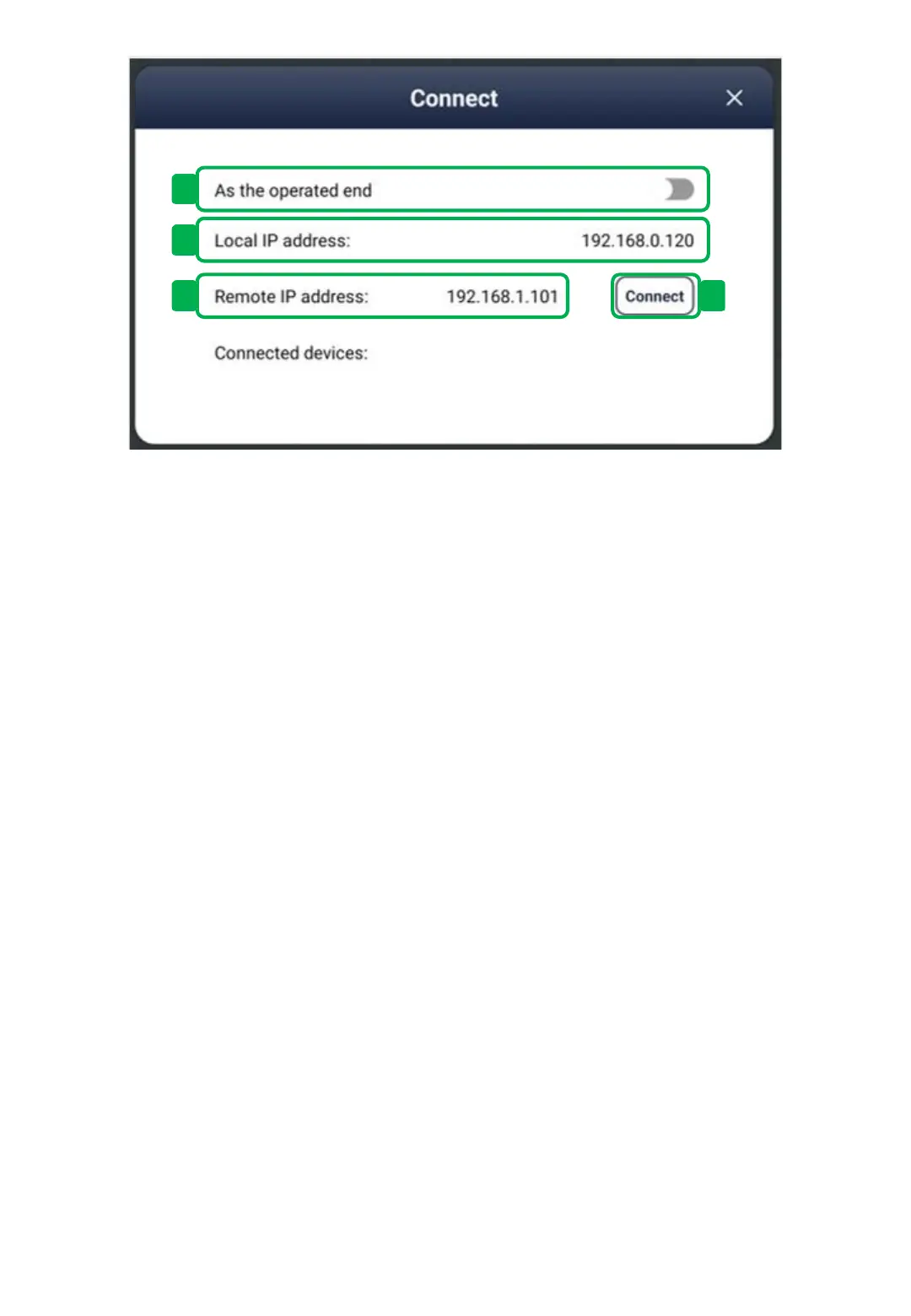 ③ Remote IP address: Indicates the network address of the blackboard to be connected.